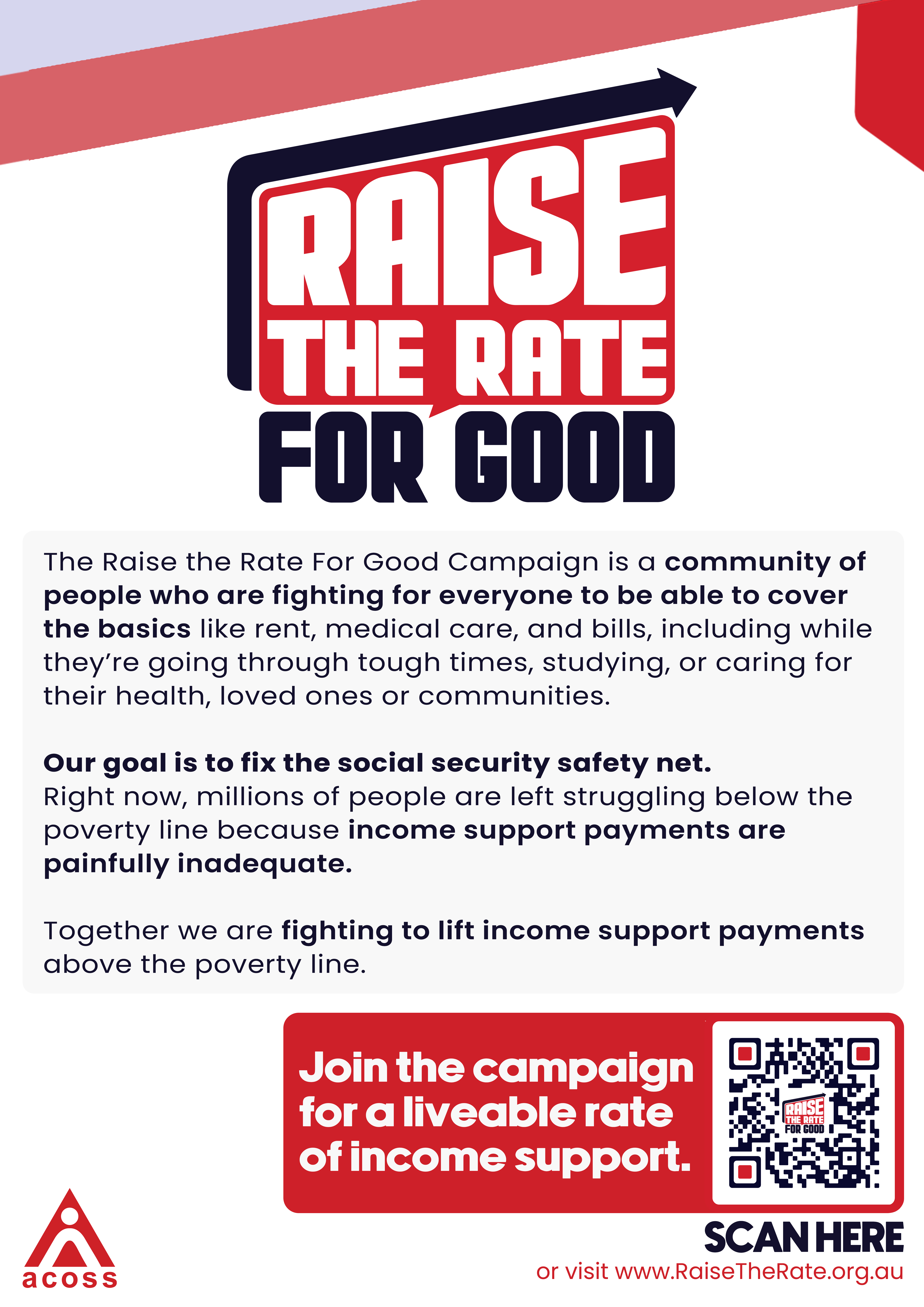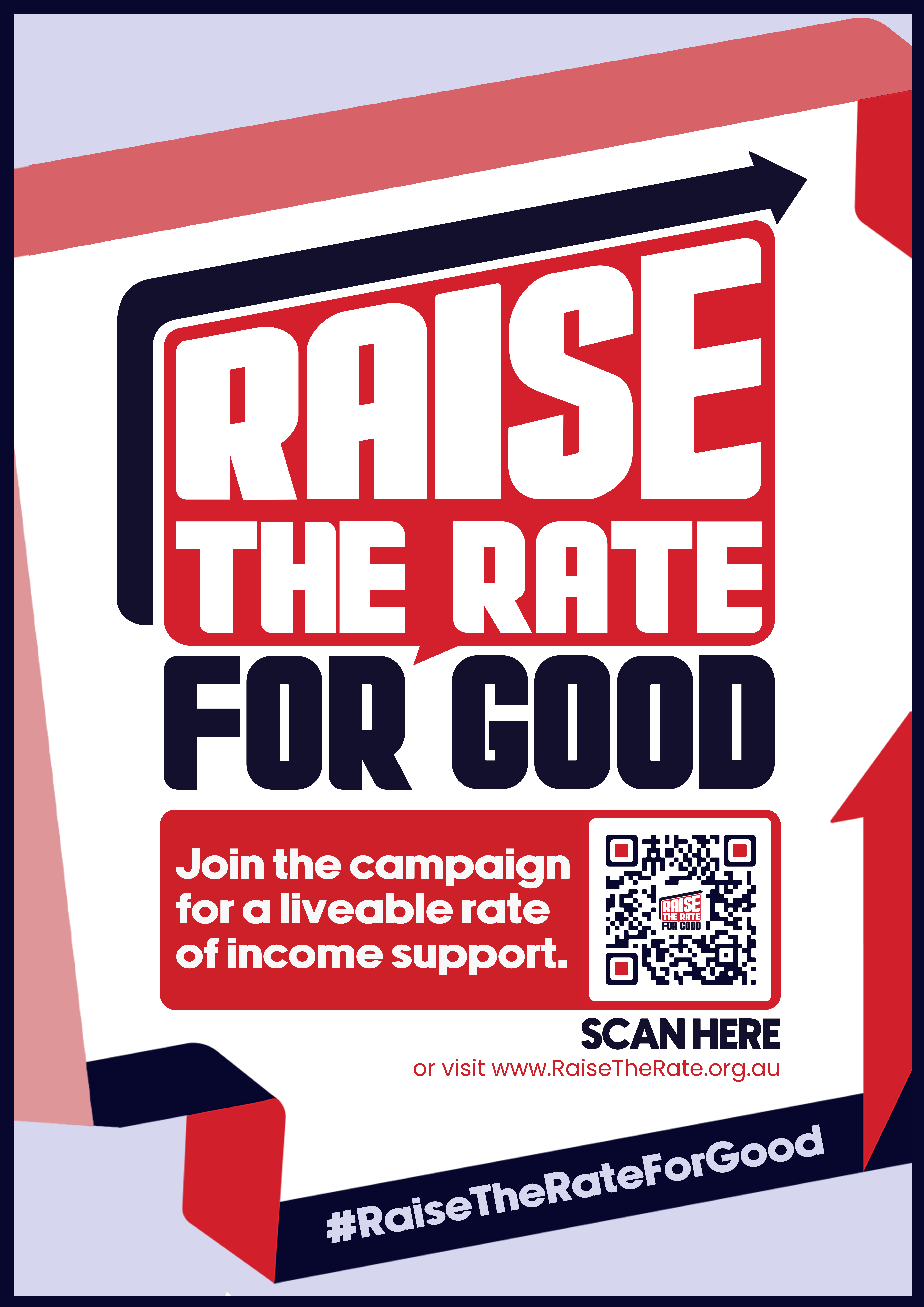 The Raise the Rate campaign is driven community action. We've provided some ready-to-print material for your campaigning needs including posters, flyers, signage and more. We're also open to your suggestions!